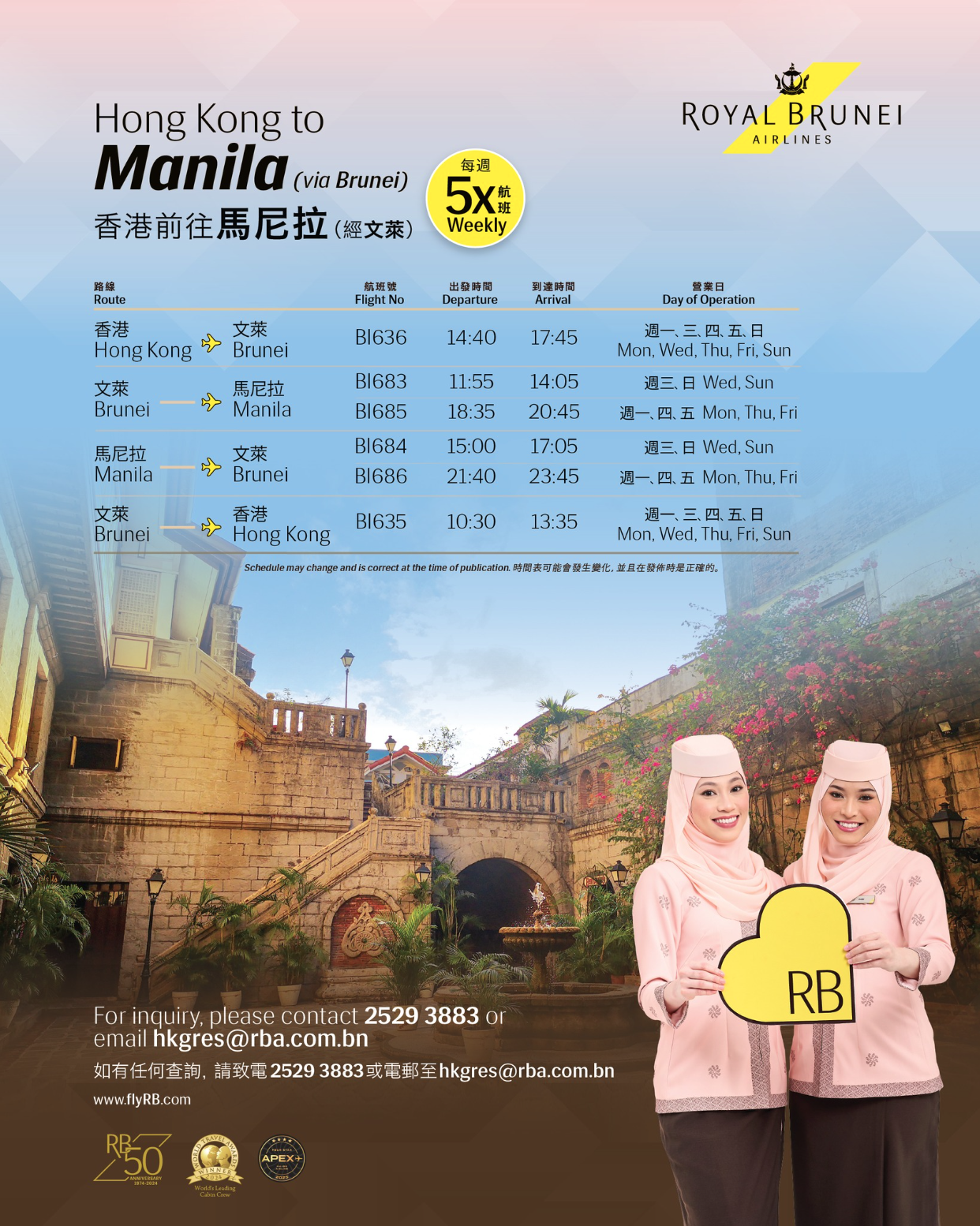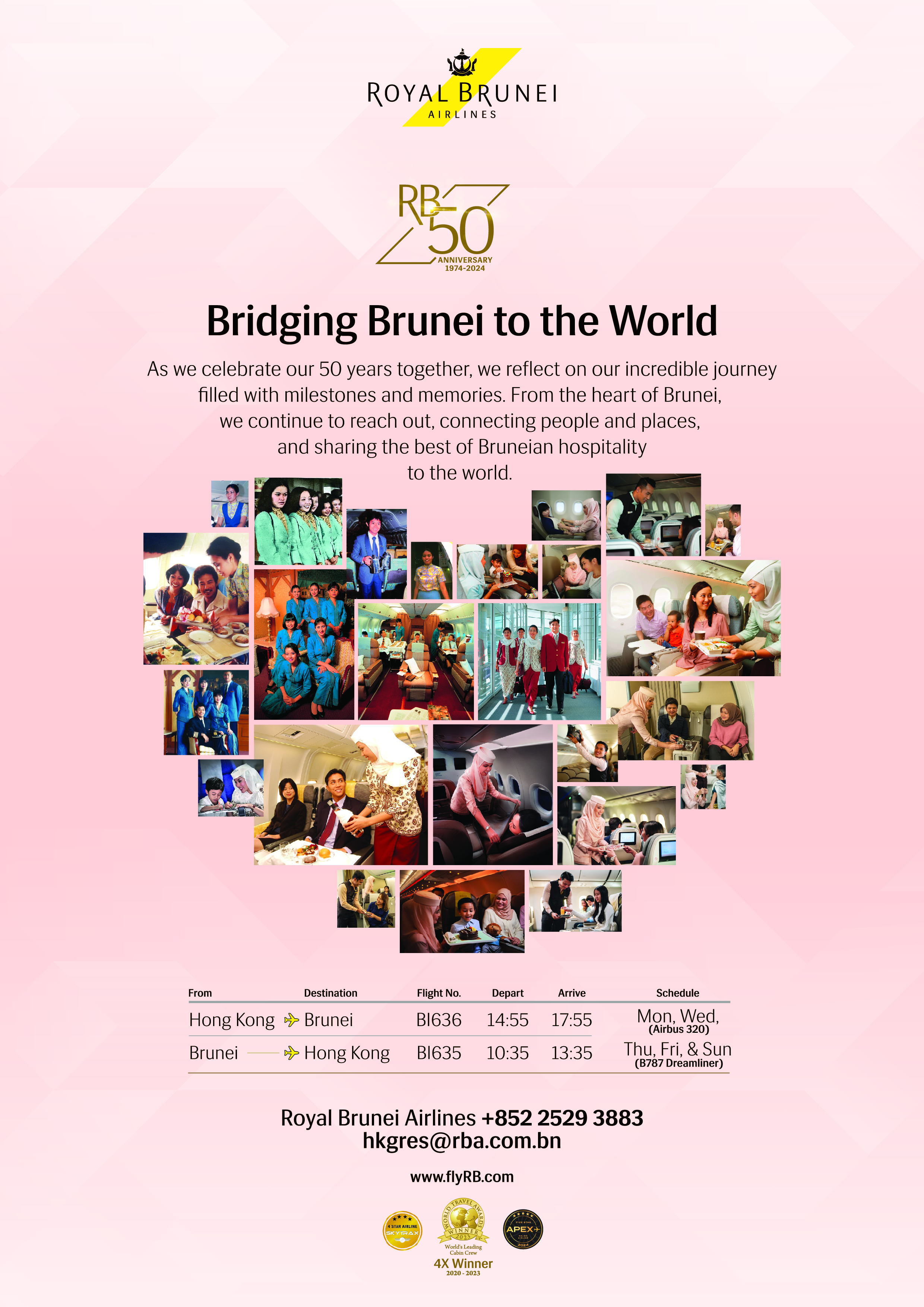 Royal Brunei Airlines - from Hong Kong to Surabaya (only one hour transfer in Brunei) from 27 Oct 2023
