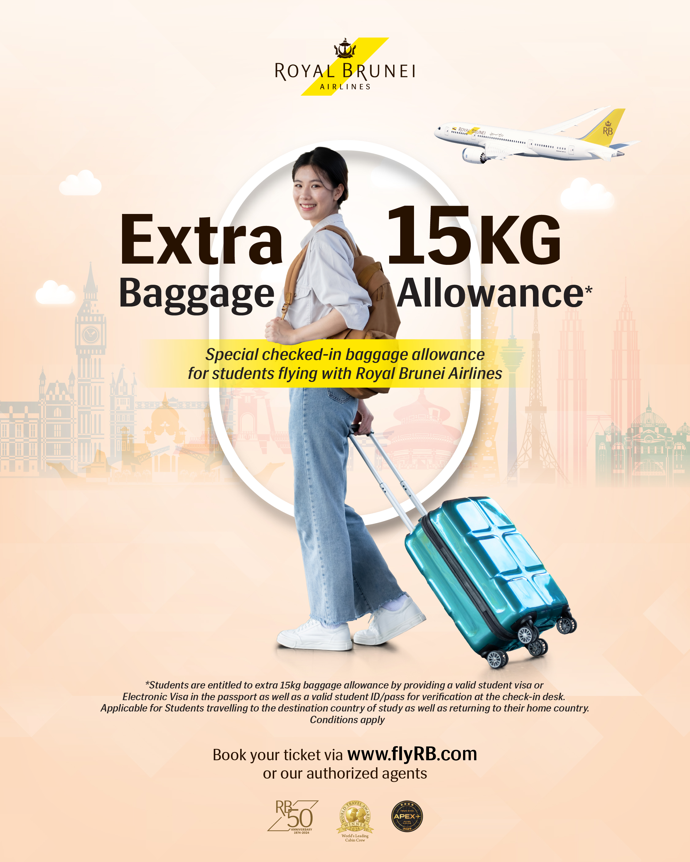 Special checked-in baggage allowance for students flying with Royal Brunei Airlines