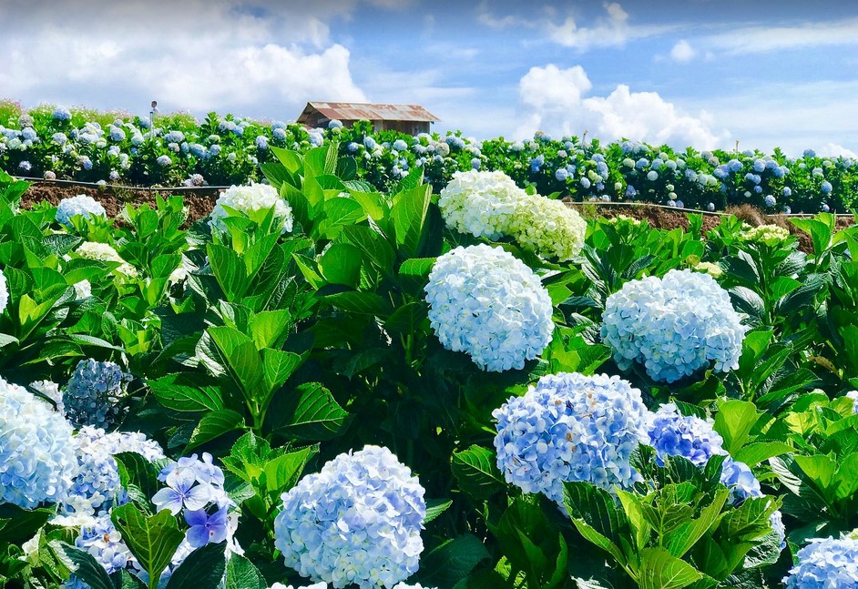 -Explore the Hydrangea Flower Garden, a picturesque site showcasing hydrangeas in blue, pink, white, and purple.