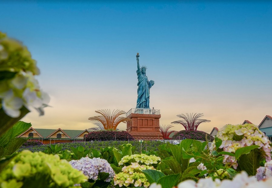 -Visit Lam Vien Square, a modern landmark featuring the iconic wild sunflower and artichoke flower sculptures.